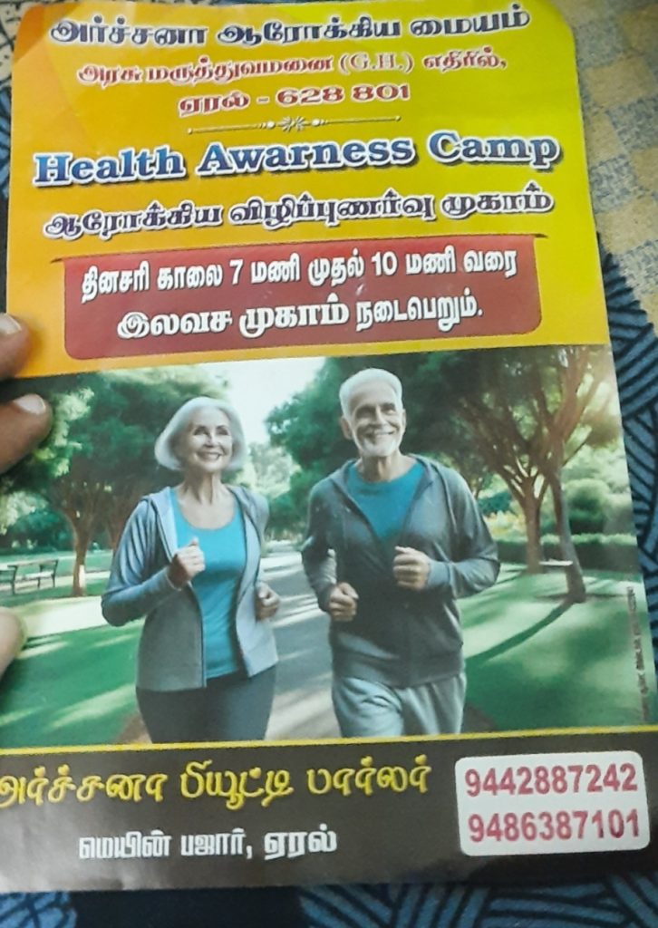 தினமும் காலை 7:00 மணி முதல் 10 மணி வரை இலவச முகாம்கள் நடைபெறும்.