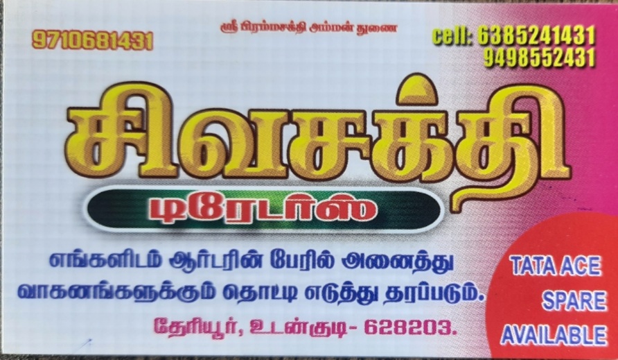 எங்களிடம் TATA ACE,THOSTH உள்ளிட்ட அனைத்து வாகனங்களும் ஆர்டரின் பெயரில் லாரி தொட்டி எடுத்து தரப்படும்.