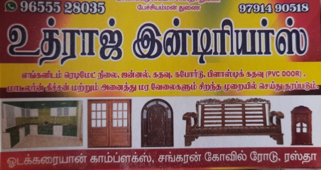 ஜன்னல்,கதவு,கபோர்டு,பிளாஸ்டிக் கதவு,மாடர்ன் கிச்சன் மற்றும் டிசைன் வேலைகள்,கடசல் வேலைகளும் சிறந்த முறையில் செய்து தரப்படும்.